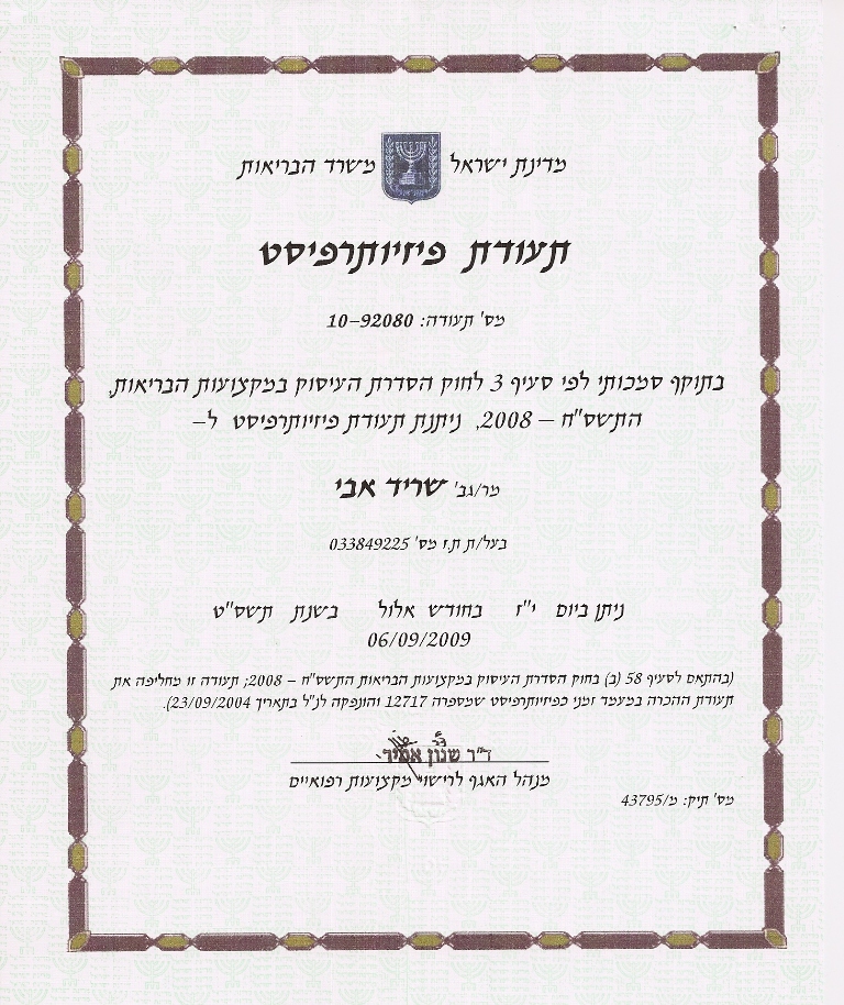 טיפולי הפיזיותרפיה הפרטיים אצלי בקליניקה מוכרים על ידי כללית מושלם מכיוון שאני פיזיותרפיסט מוסמך. (במידה ויש לכם ביטוח פרטי דרך חברות הביטוח כדאי לברר זכאותכם לקבלת החזר על טיפולי פיזיותרפיה, דיקור או רפואה משלימה.)
